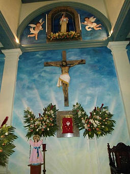 Se decora su capilla con flores y cortinas.